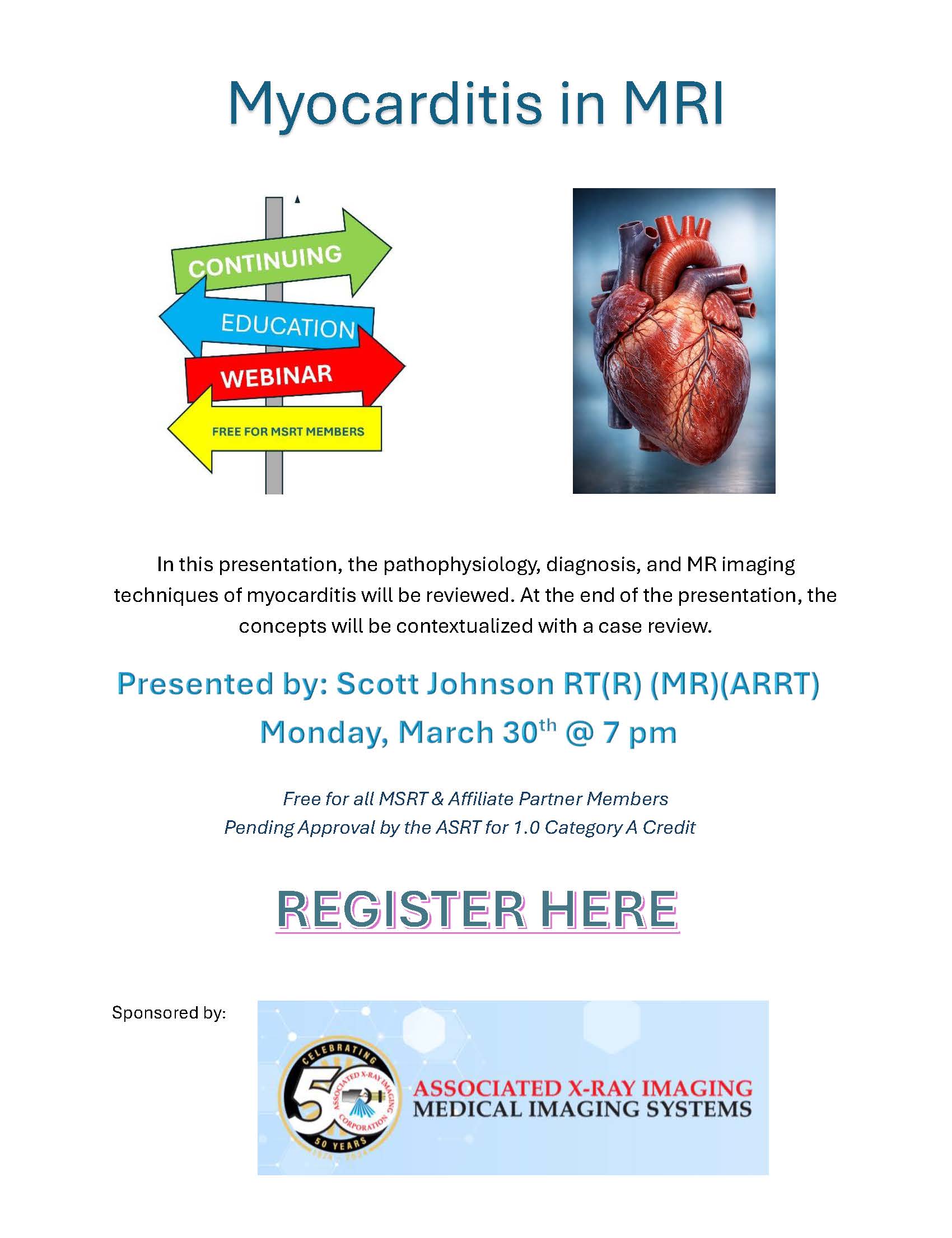 The MaSRT, CSRT, NHSRT and MeSRT have partnered together to offer members monthly continuing education webinars, free to all members. Each webinar is approved for 1 ASRT Category A continuing education credit. These are live presentations offered through the Zoom Webinar Platform. All participants must be active members of their affiliate society, must pre-register and must complete a brief survey at the conclusion of the presentation to receive CE credit.